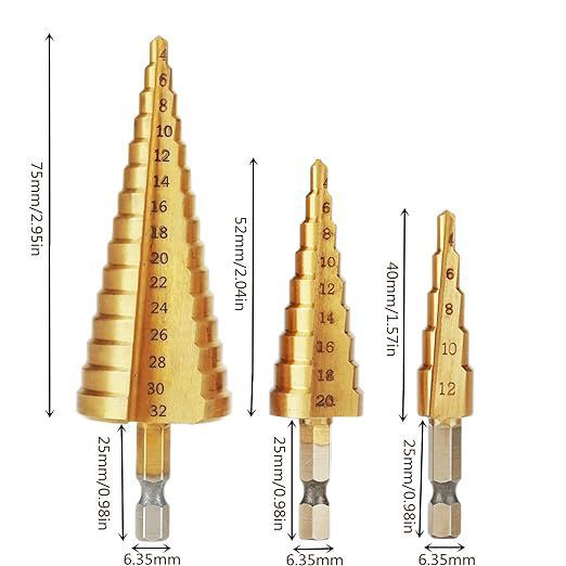 4-12mm 4-20mm 4-32mm Hex Shank HSS 3pcs Step Drill Bit Set